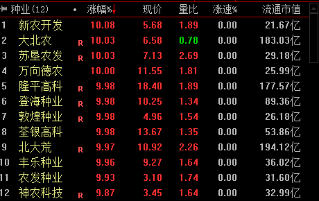 周一午后,种业股集体涨停。截至发稿,板块内新农开发、大北农、隆平高科、丰乐种业等12只个股全部涨停。